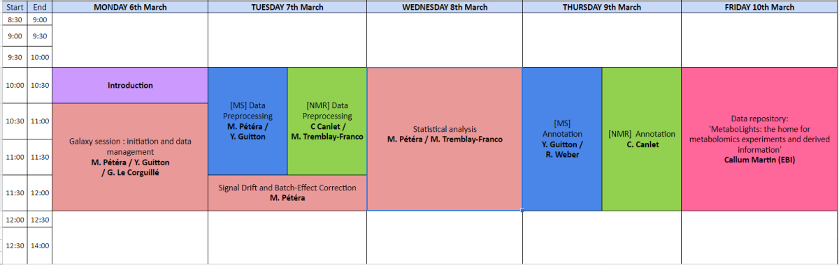 Scientific comitee: C. Delporte (ULB, Bruxelles), C. Dalle (U.DAB IRBA, Brétigny-sur-Orge), Y. Guitton (Laberca, Nantes), C. Joly, M. Pétéra, F. Giacomoni (PFEM INRA, Clermont-Ferrand), G. Le Corguillé, (Abims, Roscoff), B. Diémé (PFEM Université Clermont Auvergne), F. Souard (ULB, Bruxelles & Université de Grenoble), C. Canlet, M. Tremblay-Franco (Toxalim INRA, Toulouse), Ralf Weber (University of Birmingham)